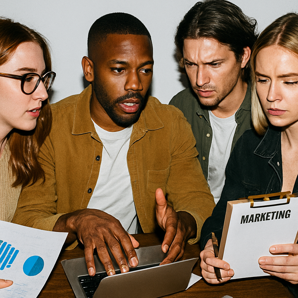 But we must be open and honest about when and how AI is used, especially as audiences become more aware and discerning. Check out the image below – first quick glance it’s a team with severe boundary issues, on closer inspection – what on earth is happening to the laptop and why does the woman on the left print her department name on the back of a surreal clipboard?